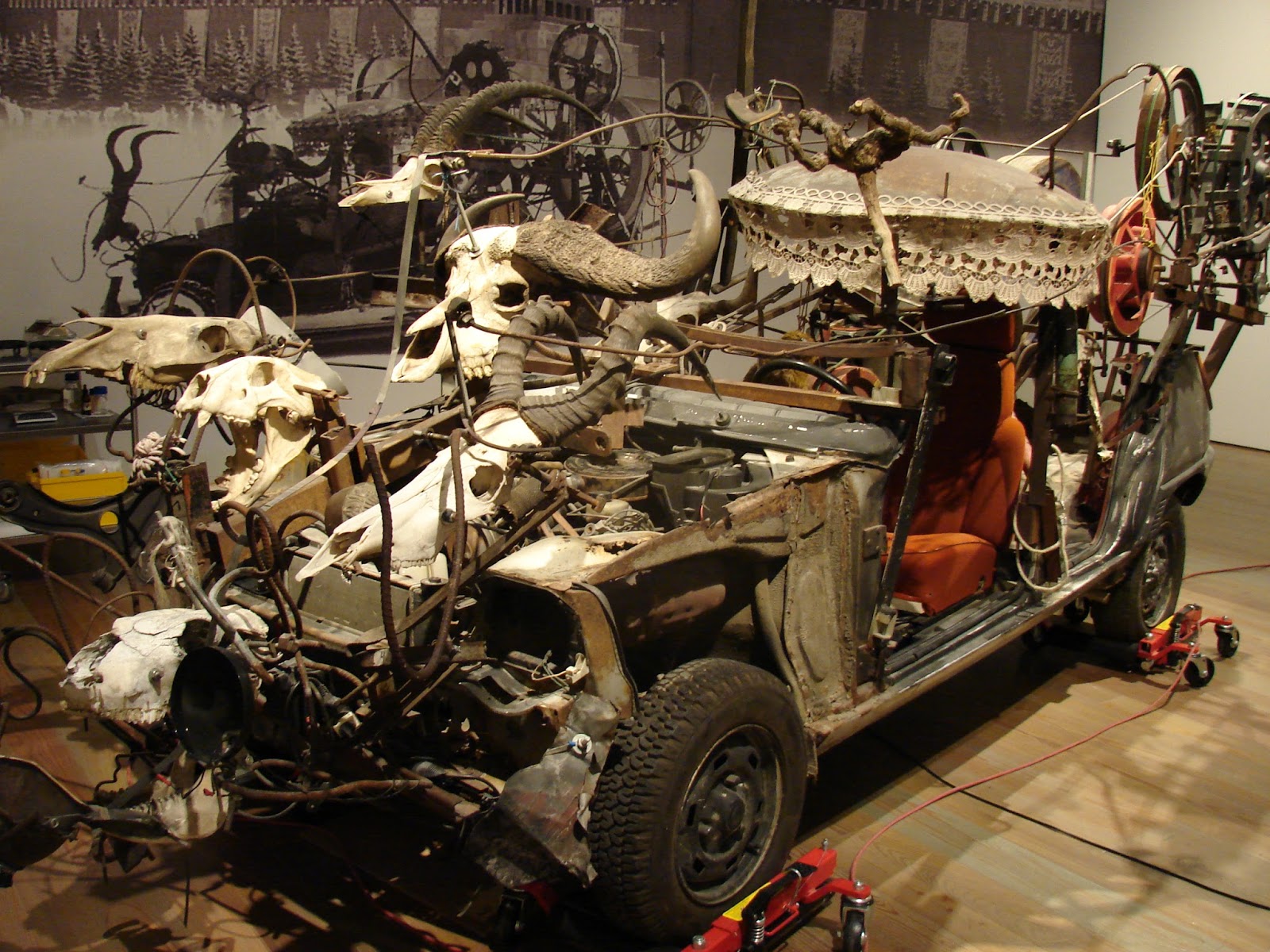 One of his machines. A lot of his devices had floor control panels you could stand on to get them moving. This was a converted car which he would parade down the streets.